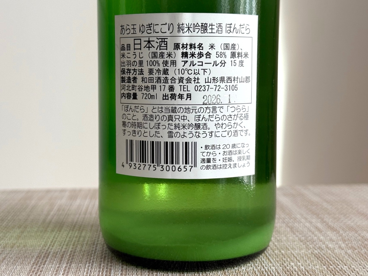 【和田酒造/山形】あら玉 ゆぎにごり 純米吟醸生酒 ぼんだら(2025BY新酒)