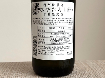【加藤嘉八郎酒造/山形】大山 特別純米酒 ひやおろし ツイートする シェアする 販売価格: 1,705円(税込み) 会員価格 (税込み) 通常価格 (税込み) 在庫 商品コード 100120250077 JANコード 数量 1 2 3 4 5 6 7 8 9 10 カートに入れる お気に入りリストへ追加する 入荷通知メールを希望する カテゴリー 特別純米酒 メーカー 加藤嘉八郎酒造(株)/山形県鶴岡市 ◆この商品について問い合わせる※本商品はクール便(冷蔵)での発送となります。※20歳未満の者の飲酒は法律で禁止されています。