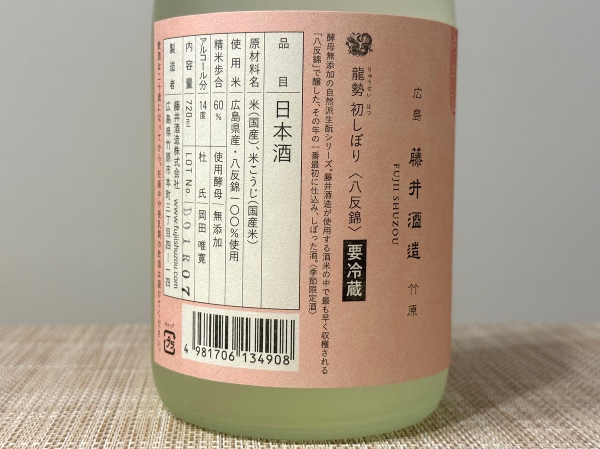 【藤井酒造/広島】龍勢 初しぼり ‐八反錦-(2025BY新酒)